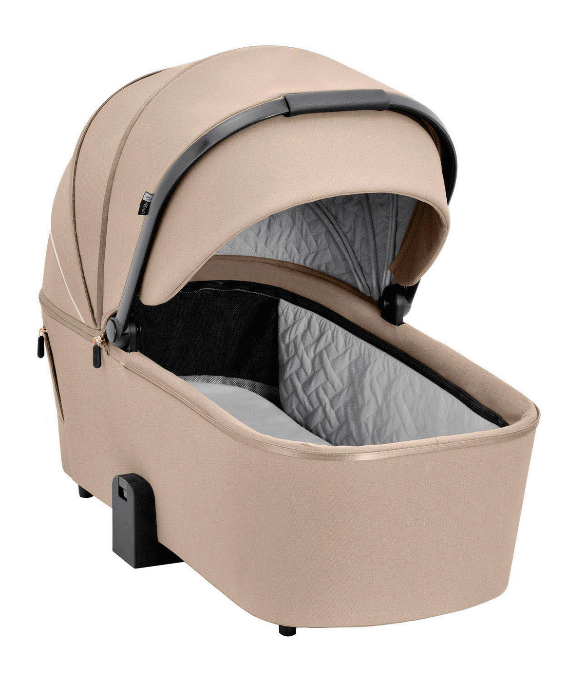 Люльку с шасси можно всего лишь одной рукой благодаря адаптерам с функцией памяти. Внутренний гипоаллергенный текстиль снимается для ухода.