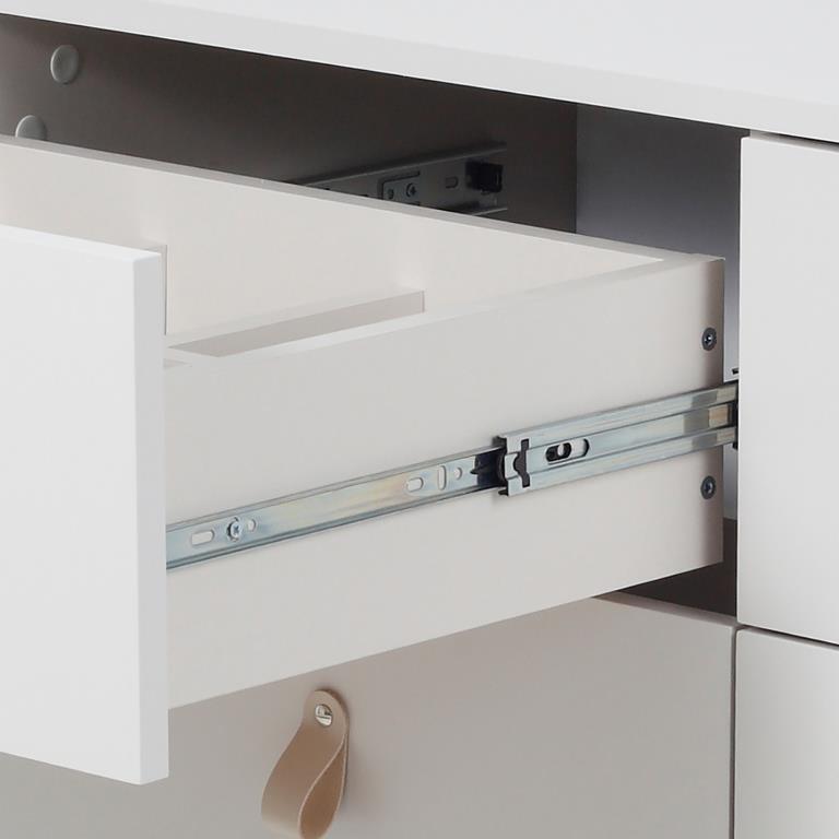 к тому же ящики дополнены телескопическими направляющими, благодаря которым комод способен выдерживать большие нагрузки на протяжении длительного времени