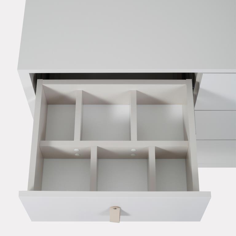 один из верхних ящиков комода дополнен органайзером, который можно вынуть и установить в верхний левый или в верхний правый ящик
