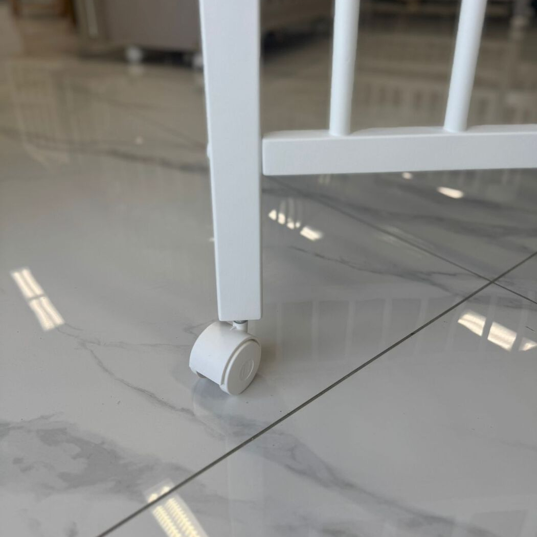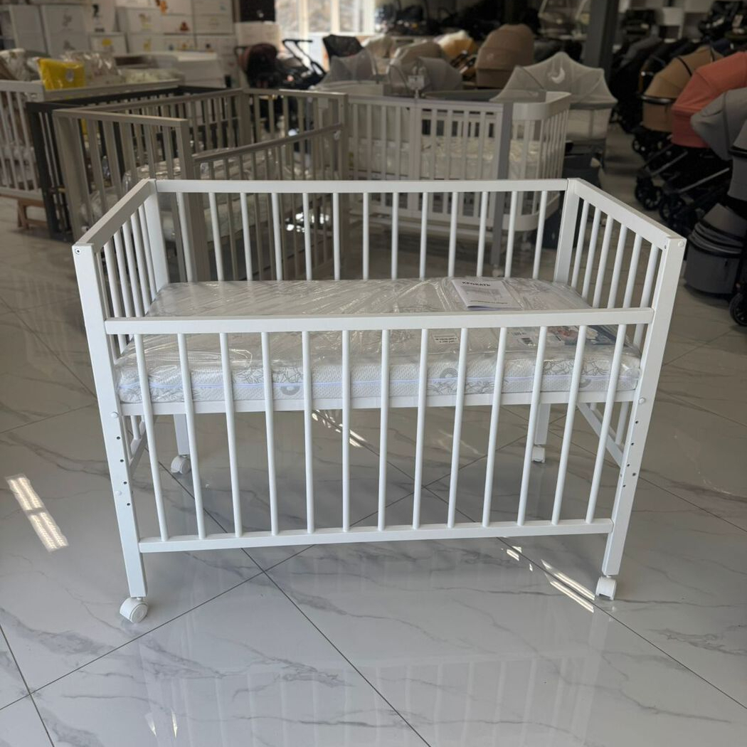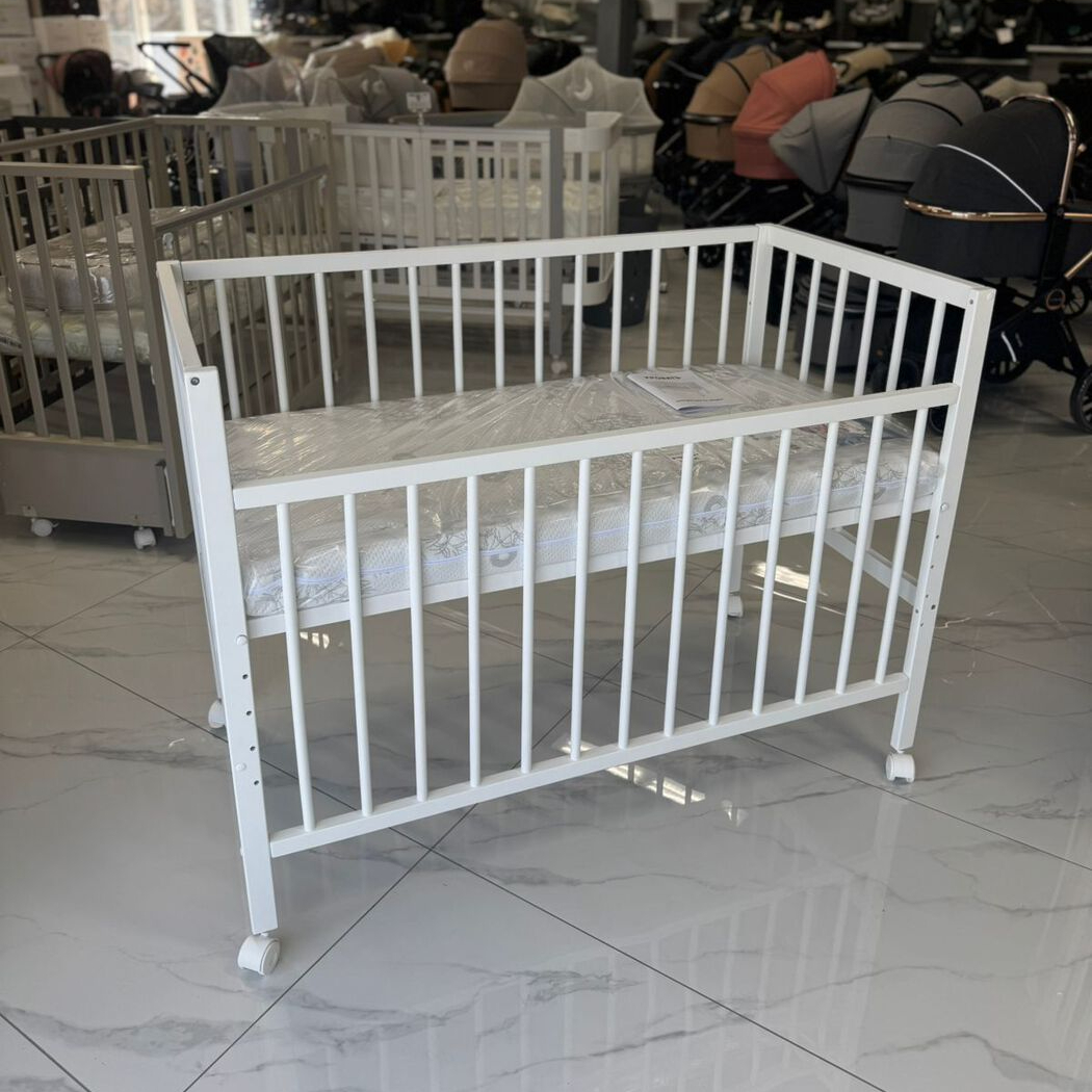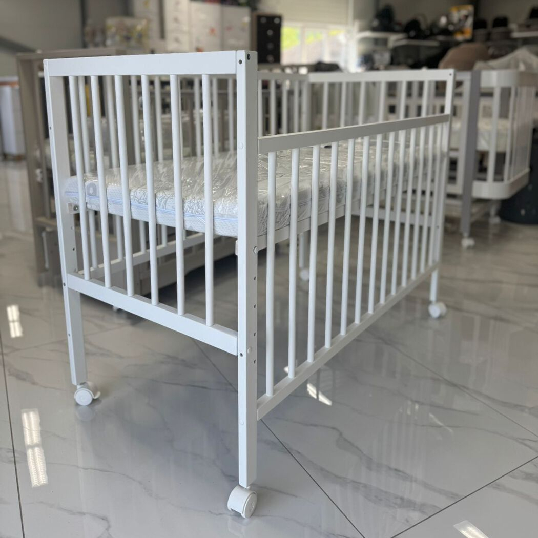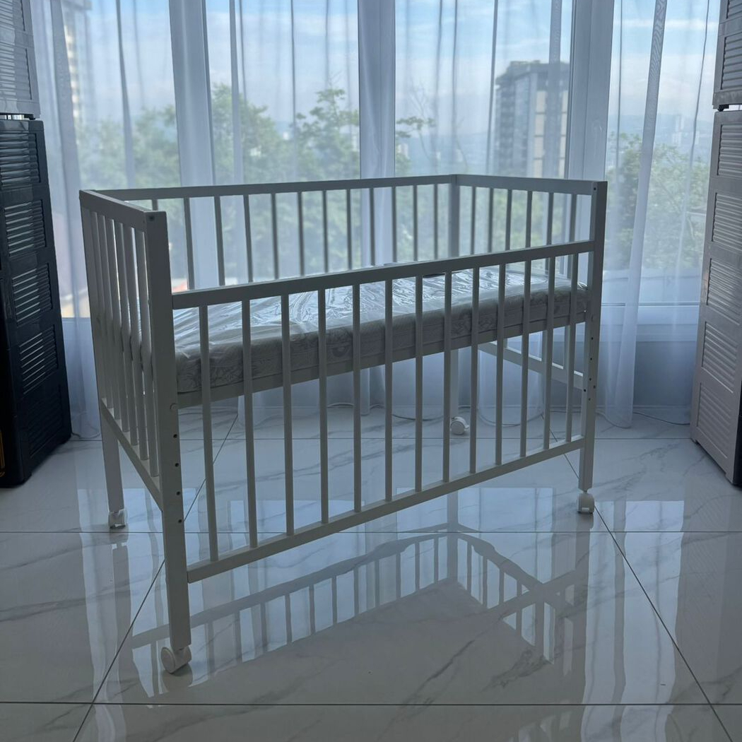 Ясельная кровать на ножках и колесиках.