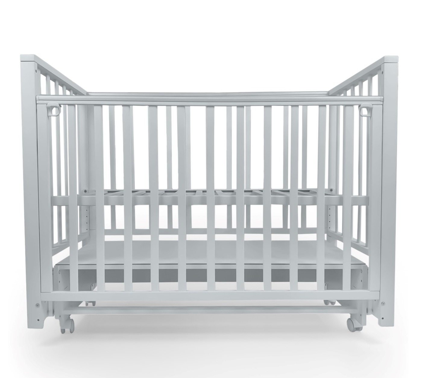 Верхние планки боковых стенок дополнены силиконовыми накладками, чтобы малыш не повредил десна (во время прорезывания зубов) и поверхность кроватки.