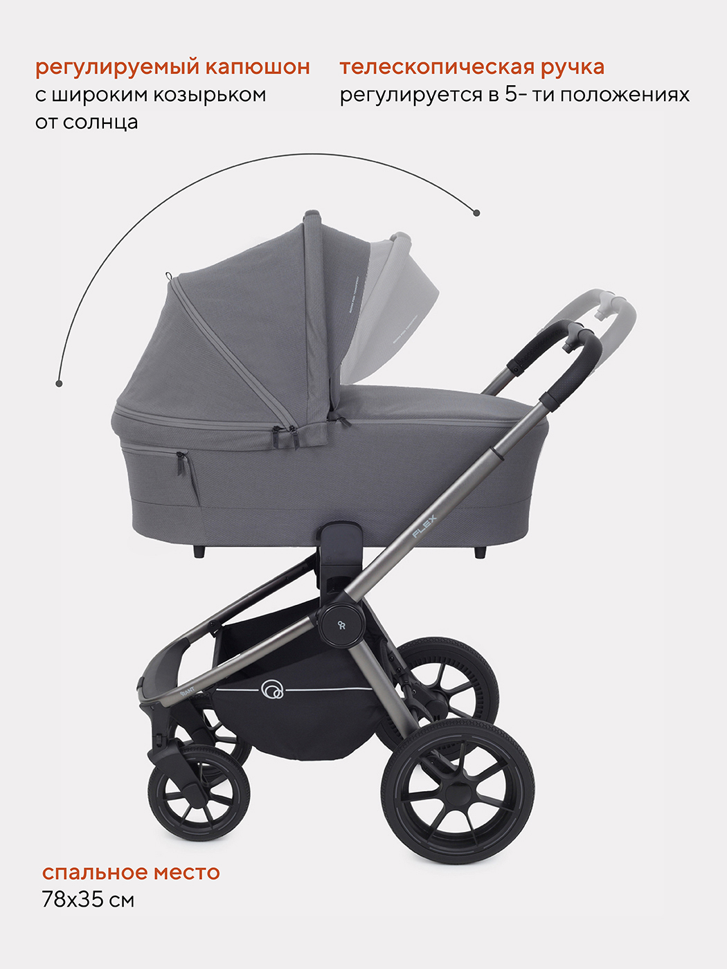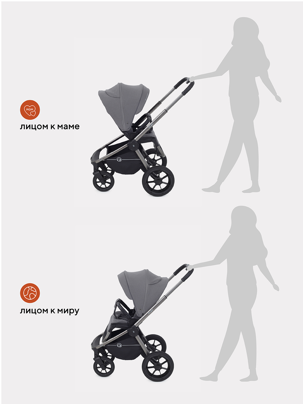Модульная коляска городского типа с вместительным лежачим блоком и реверсивным прогулочным.