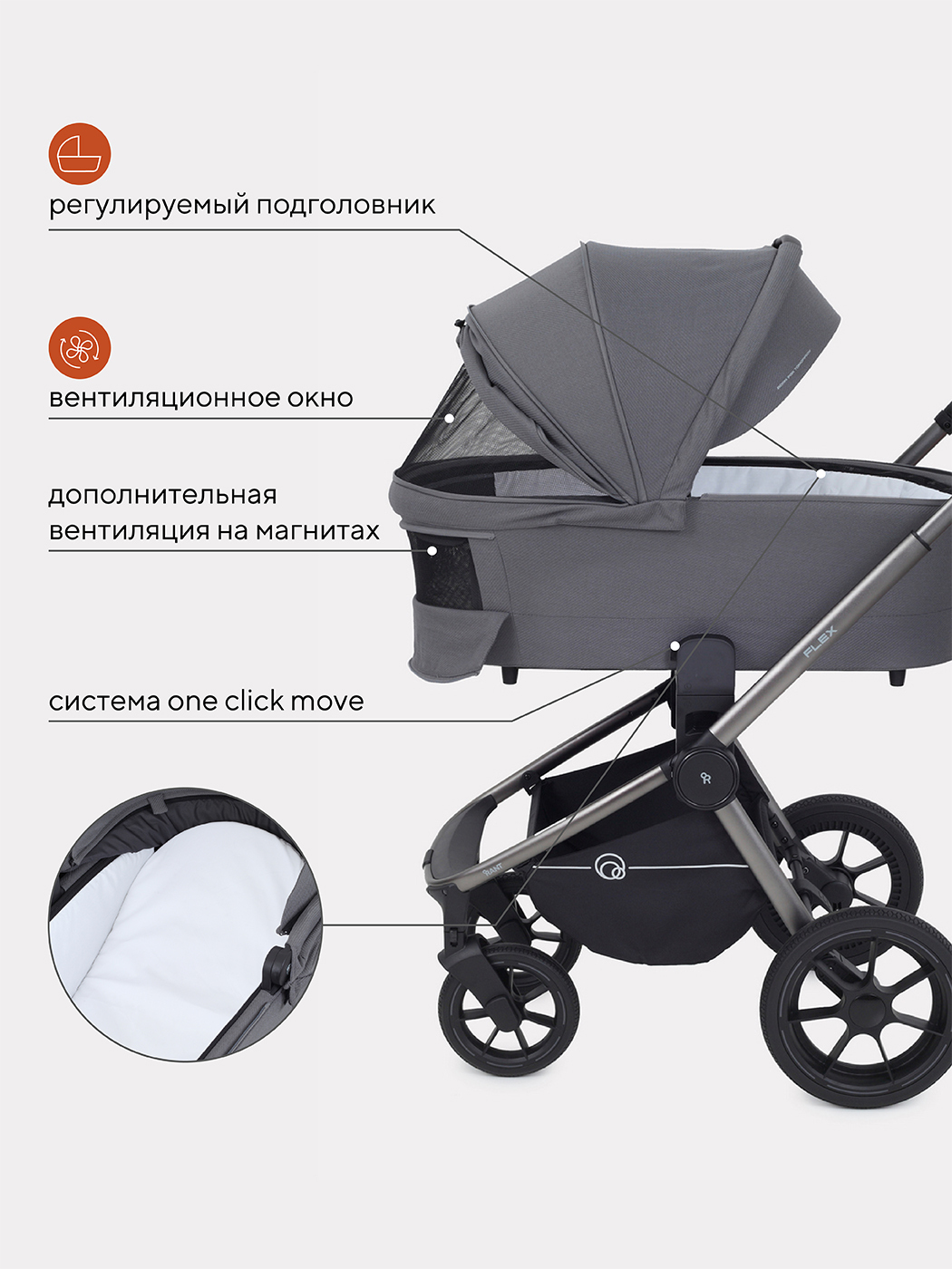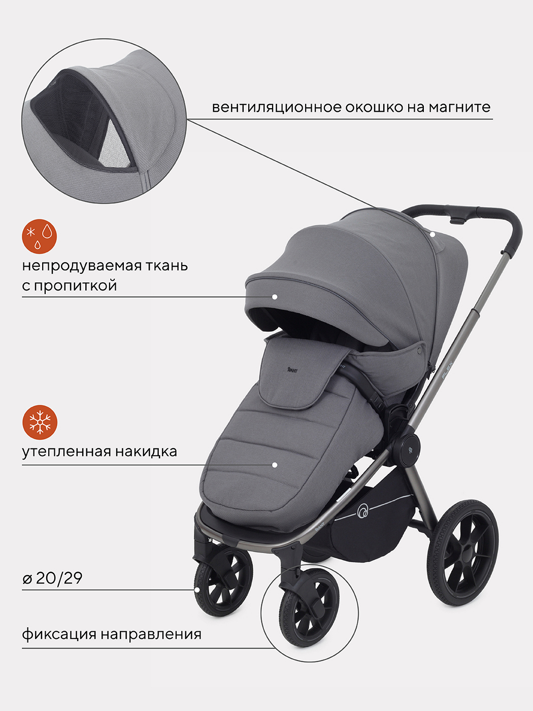 Все фишки современных колясок присутствуют: окошки для проветривания, магнитные замки, дополнительные клинья в капюшонах и т.п.