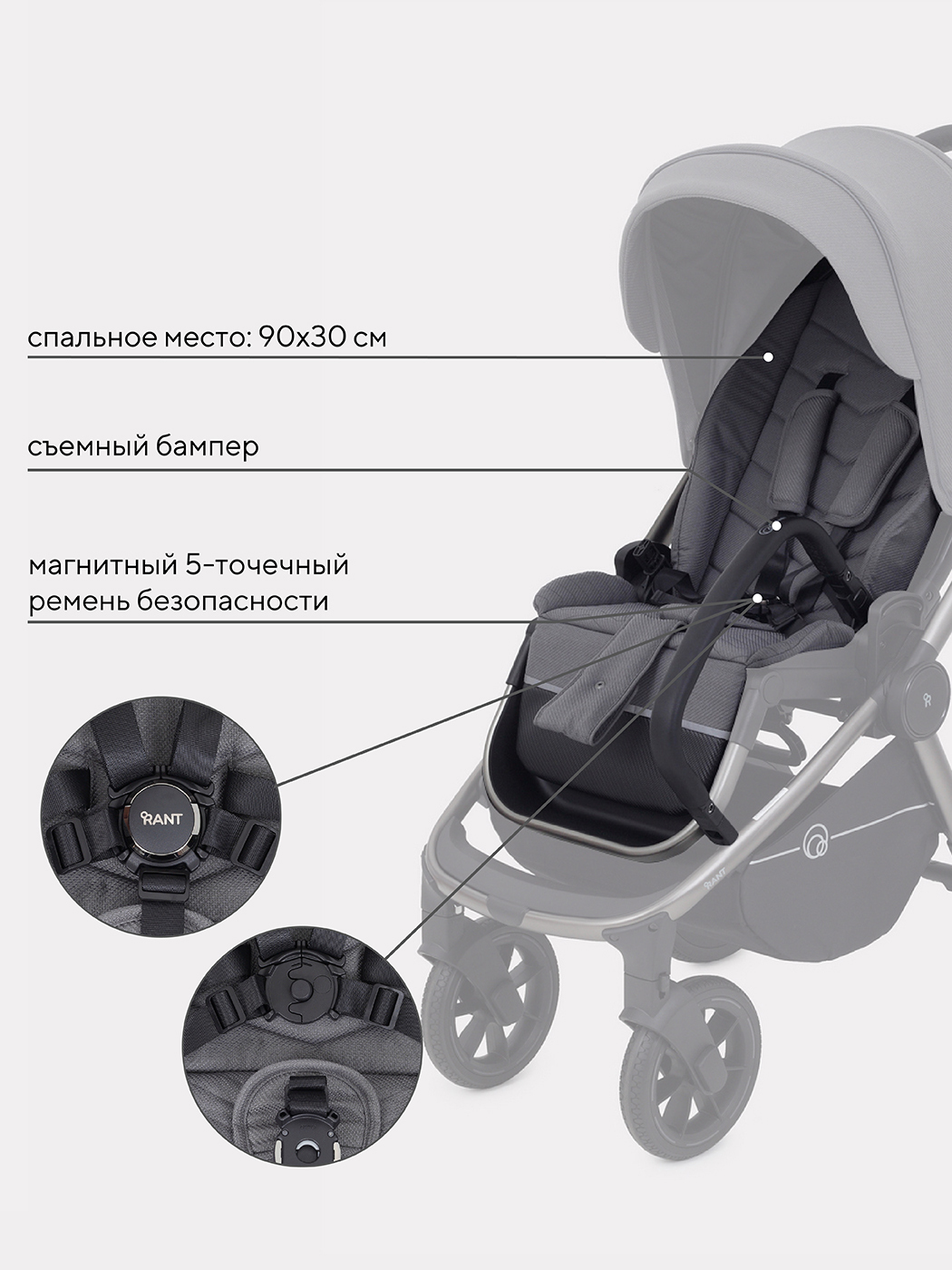 Широкое прогулочное место - ребенок вместится во всех комбинезонах и конвертах.