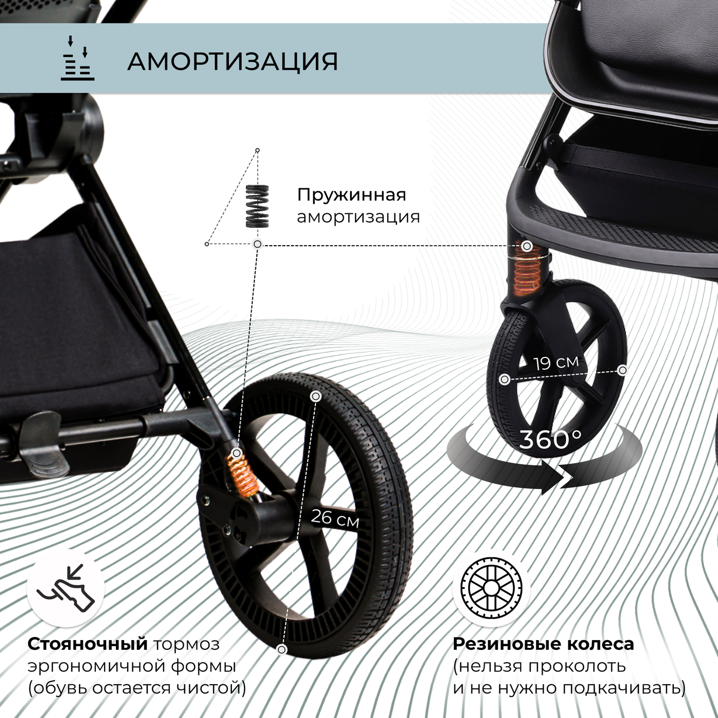 ✔ шасси коляски – всего 58 см! Поэтому коляска пройдет в любой дверной проём и лифт;