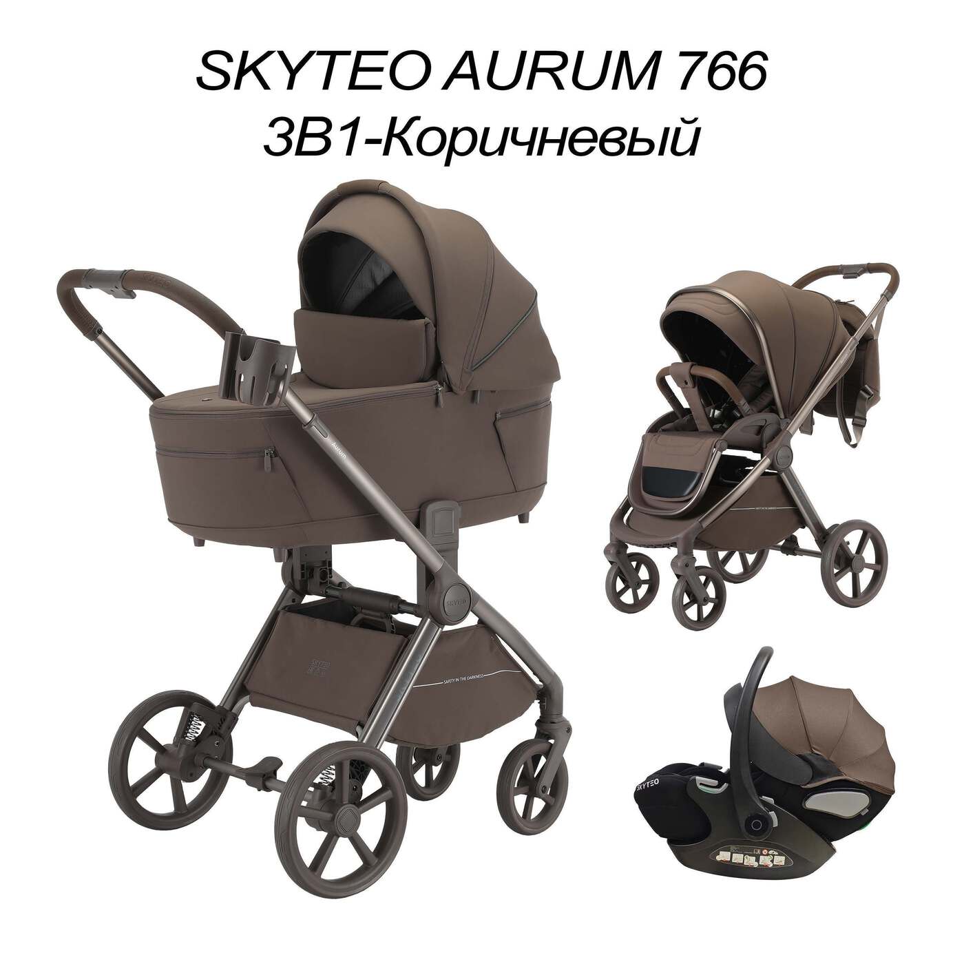 Коляска 3в1 SkyTeo Aurum 766 Коричневый купить во Владивостоке по цене 43 000 ₽ руб