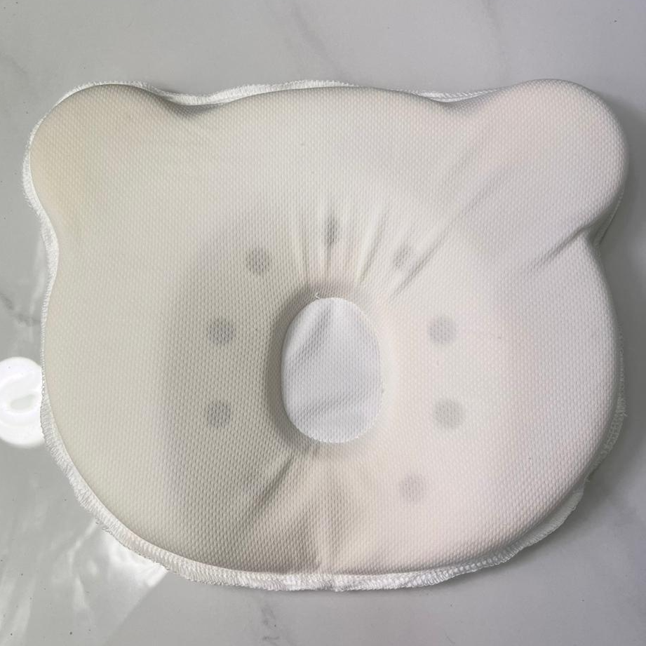 Подушка Мишка для новорожденных имеет форму головы медвежонка с углублением для затылка по центру.