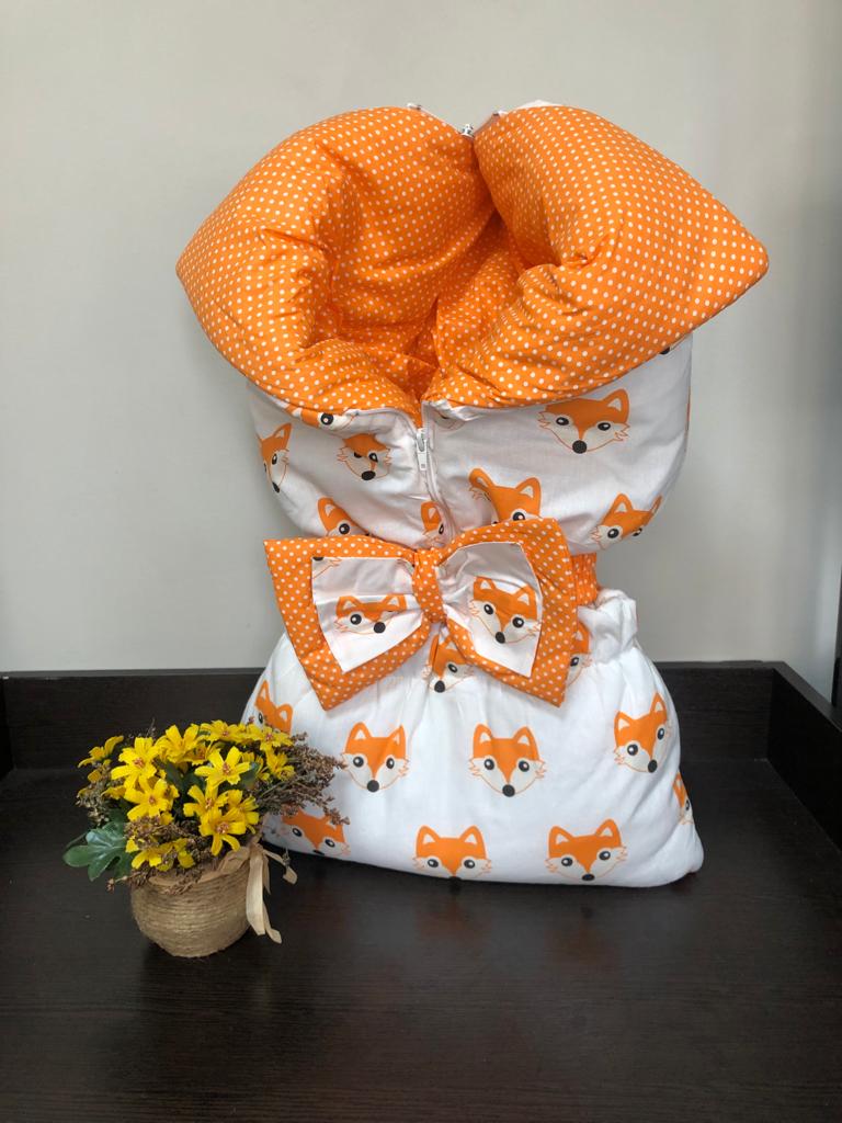 Закрывается на молнии, снизу выворотный карман, закрывающий ножки.