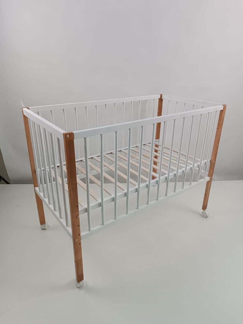 Ясельная кровать на ножках и колесиках.