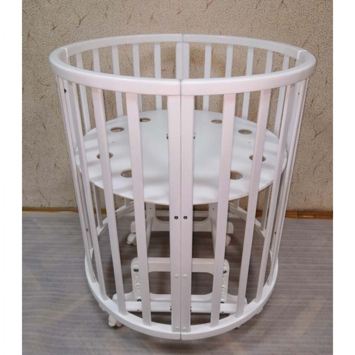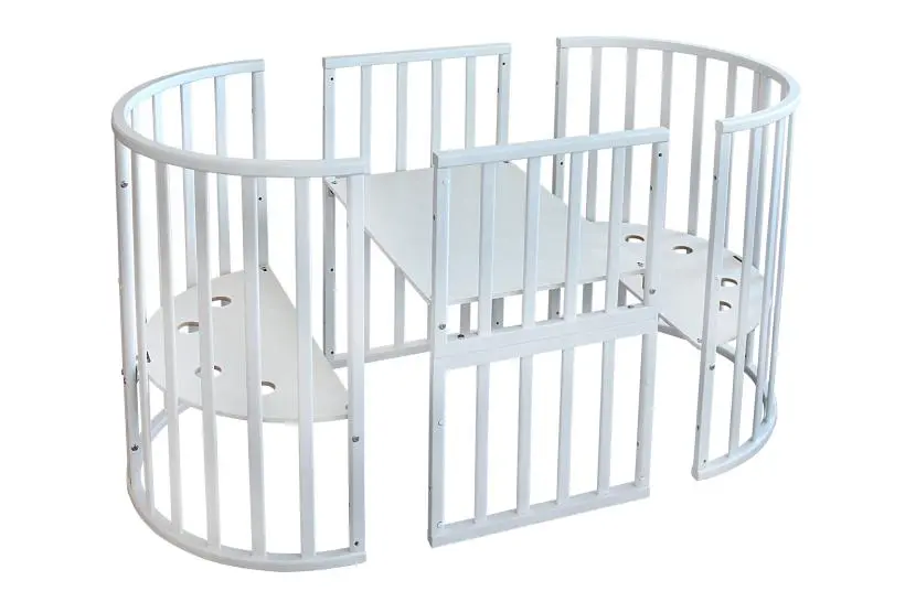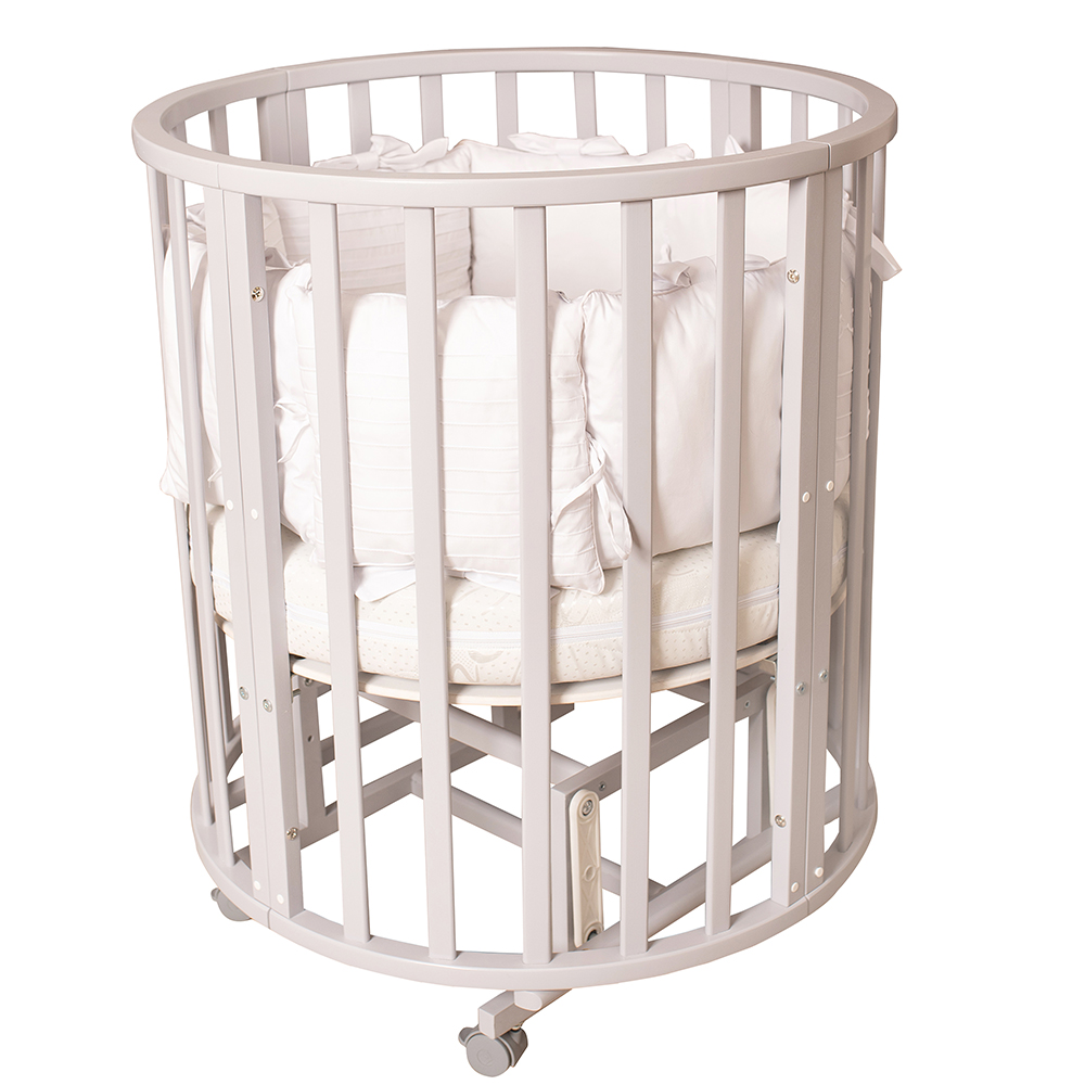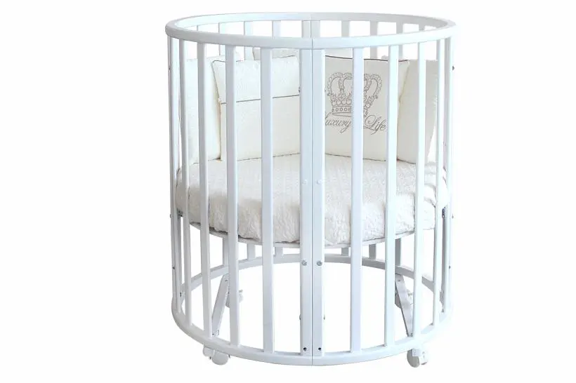 Благодаря круглой форме, колёсикам и лёгкой, но прочной древесине, из которой изготовлена кроватка мама может делать перестановку мебели хоть каждый день.