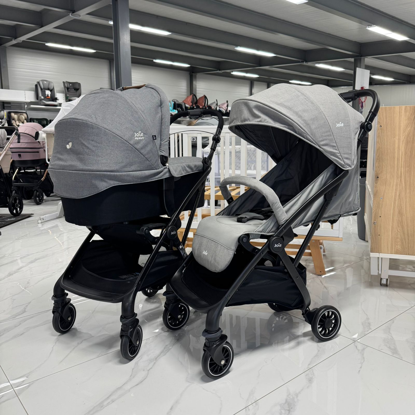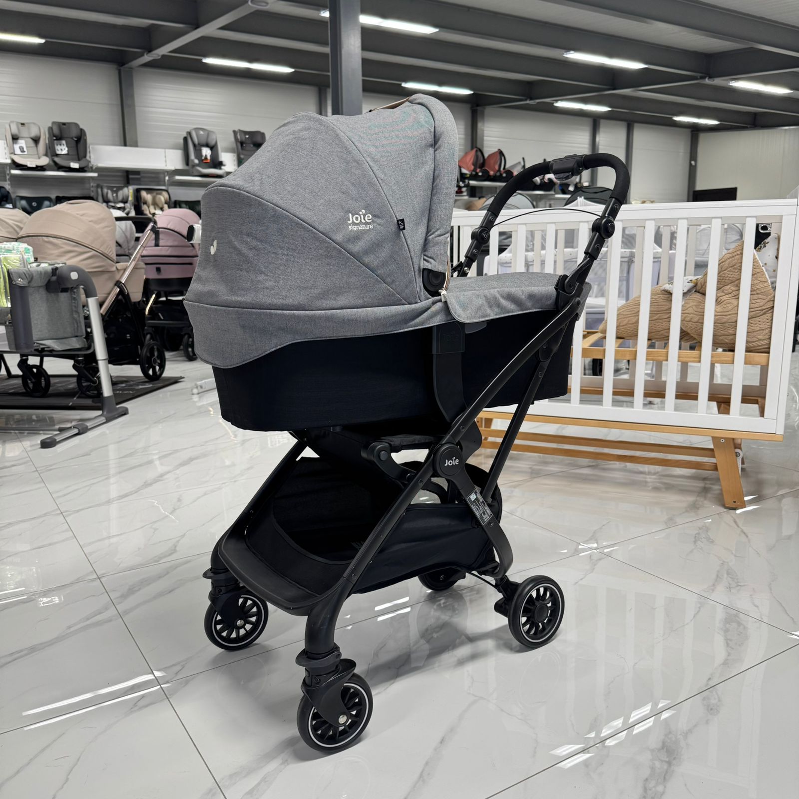Полностью сложить и разложить коляску можно, не ставя элементы на землю.