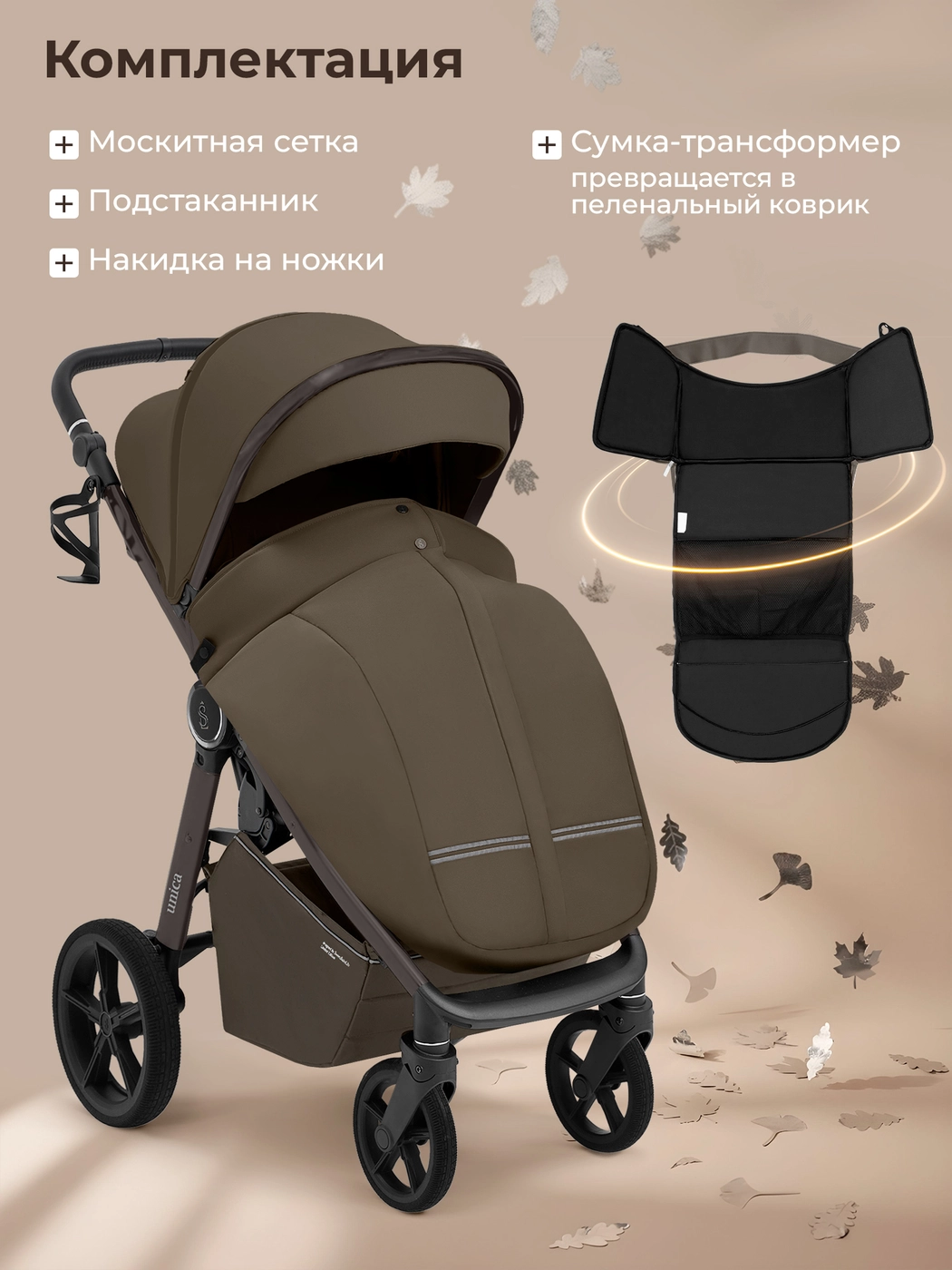 В комплекте: москитная сетка, сумка для мамы и подстаканник.