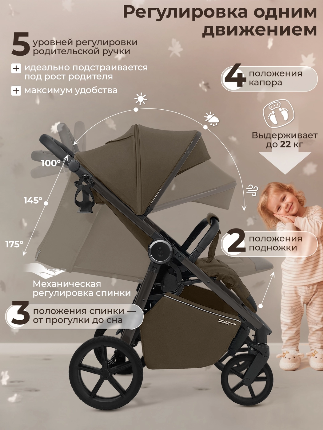 Эта всесезонная коляска станет отличным выбором для прогулок с детьми от 6 месяцев до 4 лет.