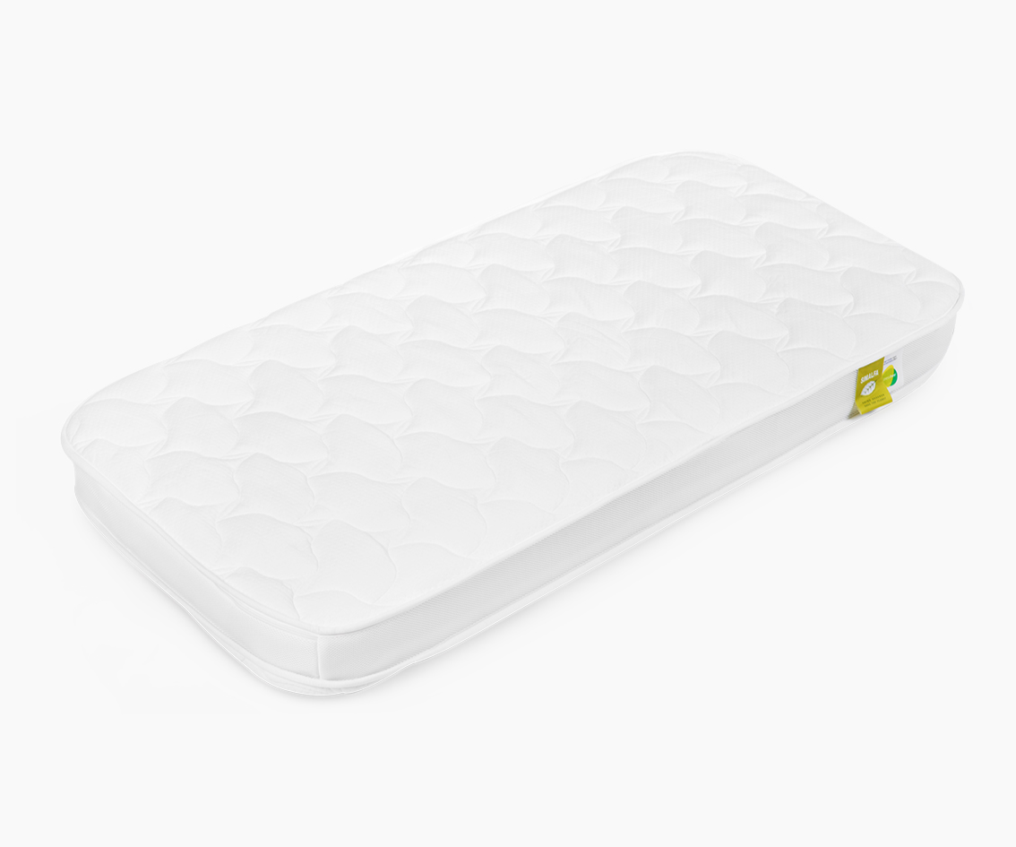 Модель предназначена для сна в разном возрасте. С одной стороны слой натуральной латексированной кокосовой койры 10мм, он обеспечивает максимальный ортопедический эффект, необходимый новорожденному (жесткость 5 из 5). С другой — латекс, природный эластичный материал, который подарит ребенку особый комфорт благодаря точечному распределению нагрузки. На этой стороне мы рекомендуем спать детям после года (слой 10 мм, жесткость 4 из 5).